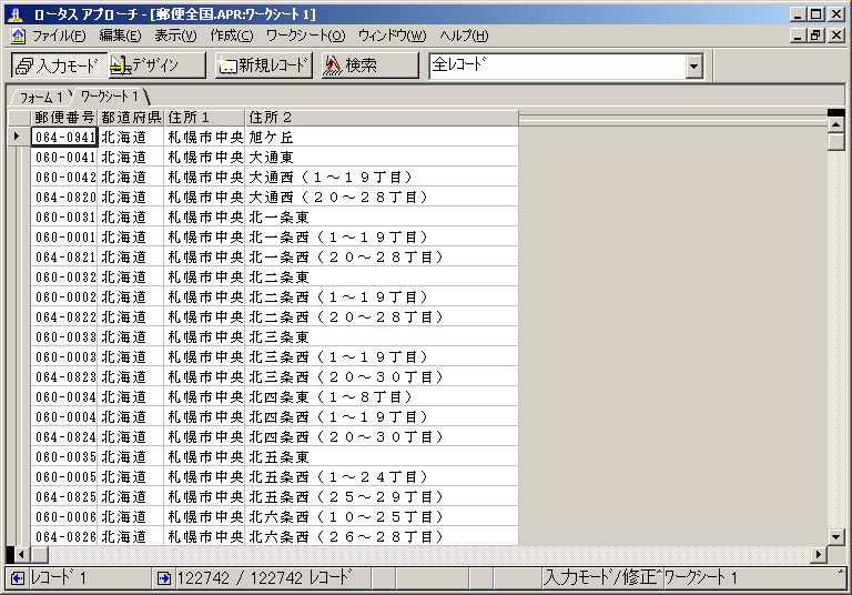 あっという間に、122,742の郵便番号の入ったデータがアプローチにインポートされました。
