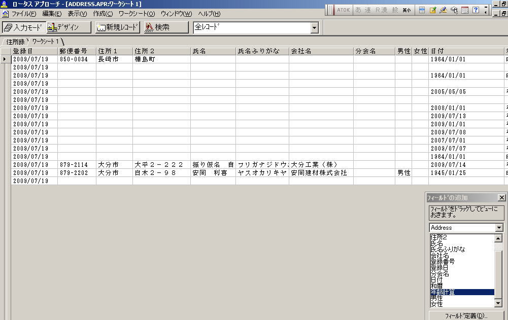 私の使っているソフトは、ロータスアプローチ
