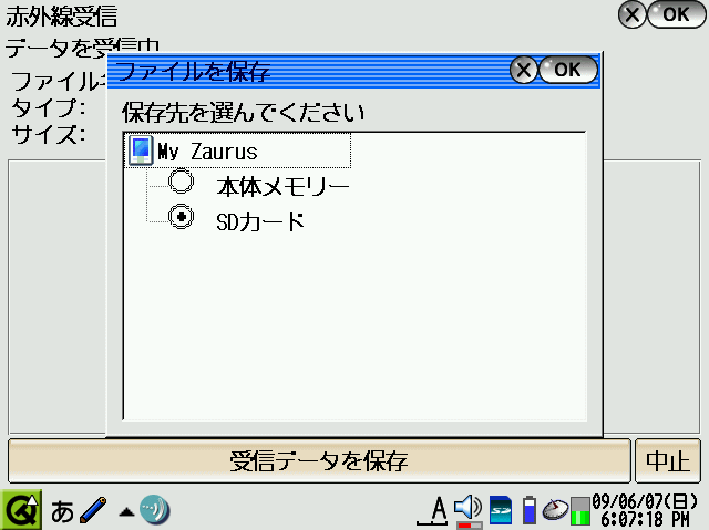 ※よってZaurusの赤外線送信では、AQUOSテレビでは使えませんでした。