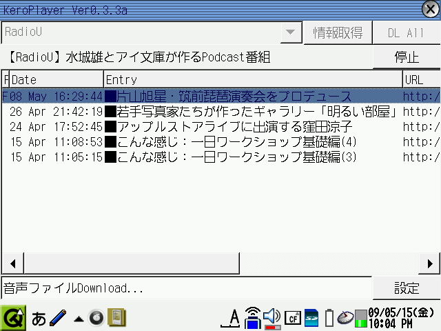 さっそく、ケロプレイヤーで、i文庫のRadioUをダウンロード。