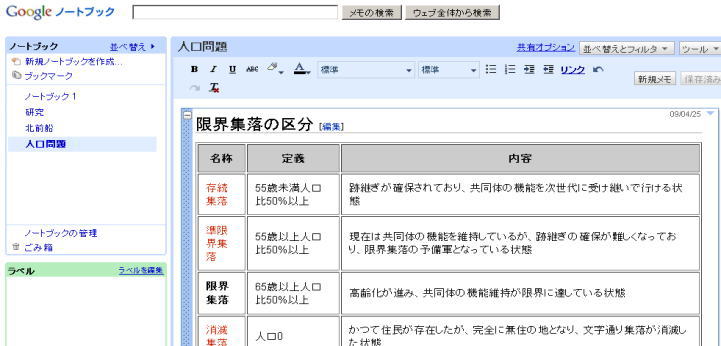 肝心のGoogle ChromeとGoogleノートブックの連携なのですが、単に好きな記事をコピーベーストするだけで、資料が増えていきます。
