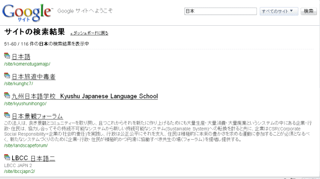 Google の検索テクノロジーを使用して自分の Google サイトのコンテンツを検索できます。
