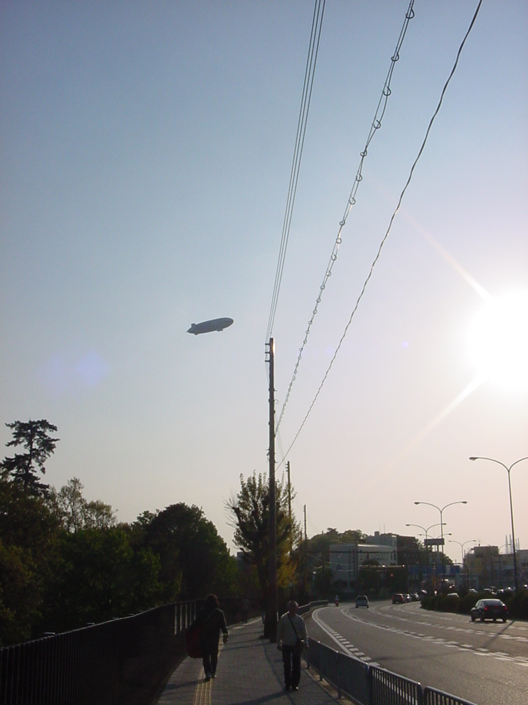 帰宅途中に飛行船が飛んでいました。