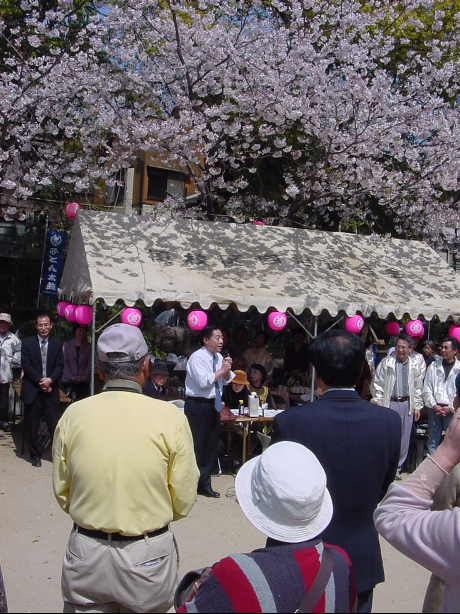 学校の校長先生が赴任してきて、その挨拶と近くの議員さん。