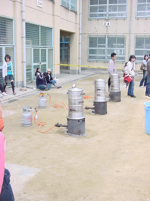 ガスボンベでもち米を蒸します。