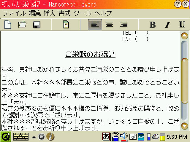 Zaurusには、マイクロソフトのWordと互換性のあるHancomMobileWord、Excelと互換性のあるHancomMobileWordがついています。